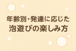 泡遊びは年齢に応じて楽しみ方を変えると、子どもが飽きずに取り組めます。保育園でも“発達に応じた遊びの提供”を意識するため、家庭でも参考にしてみてください。