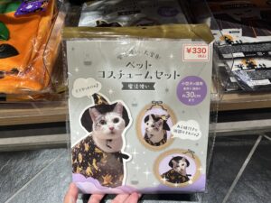 ↓また、シーズン限定のペット用仮装グッズも登場しており、家族全員でおそろいコーデを楽しむこともできます。(写真は猫が着用してました!)