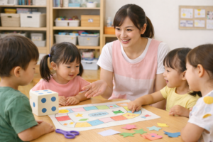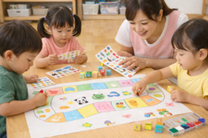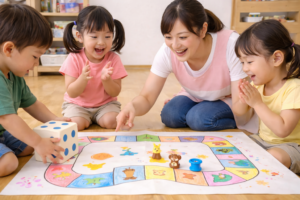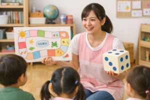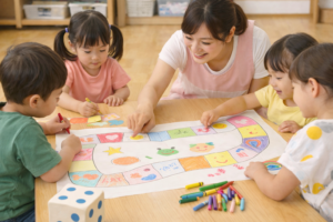 「すごろく 手作り 保育」は、幼児期に育てたい力を、遊びの中で自然に伸ばせる活動です。作る楽しさ、遊ぶ楽しさの両方を味わえることで、子どもたちの満足感も高まります。