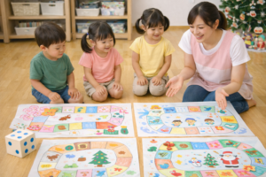 季節の行事と組み合わせることで、行事理解にもつながります。春なら「お花見すごろく」、夏は「水遊びすごろく」、秋は「どんぐりすごろく」、冬は「クリスマスすごろく」など、年間を通して楽しめます。
