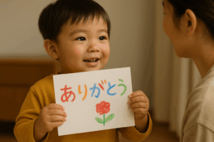 絵本(『ありがとうのほん』など)を取り入れると、より理解しやすくなります。