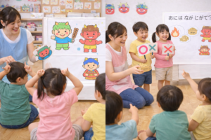 幼児クラスにおすすめなのが、節分クイズや〇×クイズです。