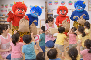 また、豆まき後に「鬼さんと仲直りする」出し物を入れることで、安心して行事を終えることができます。